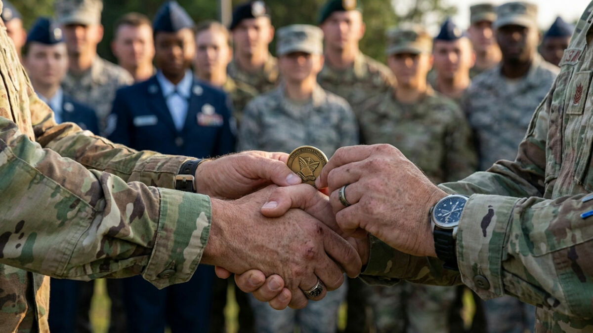 You might have seen a military challenge coin presentation and not even known it. The coins are traditionally passed from giver to recipient in a discreet, simple manner, in a handshake. If you didn’t pay very close attention to that handshake, you wouldn’t know it happened.
