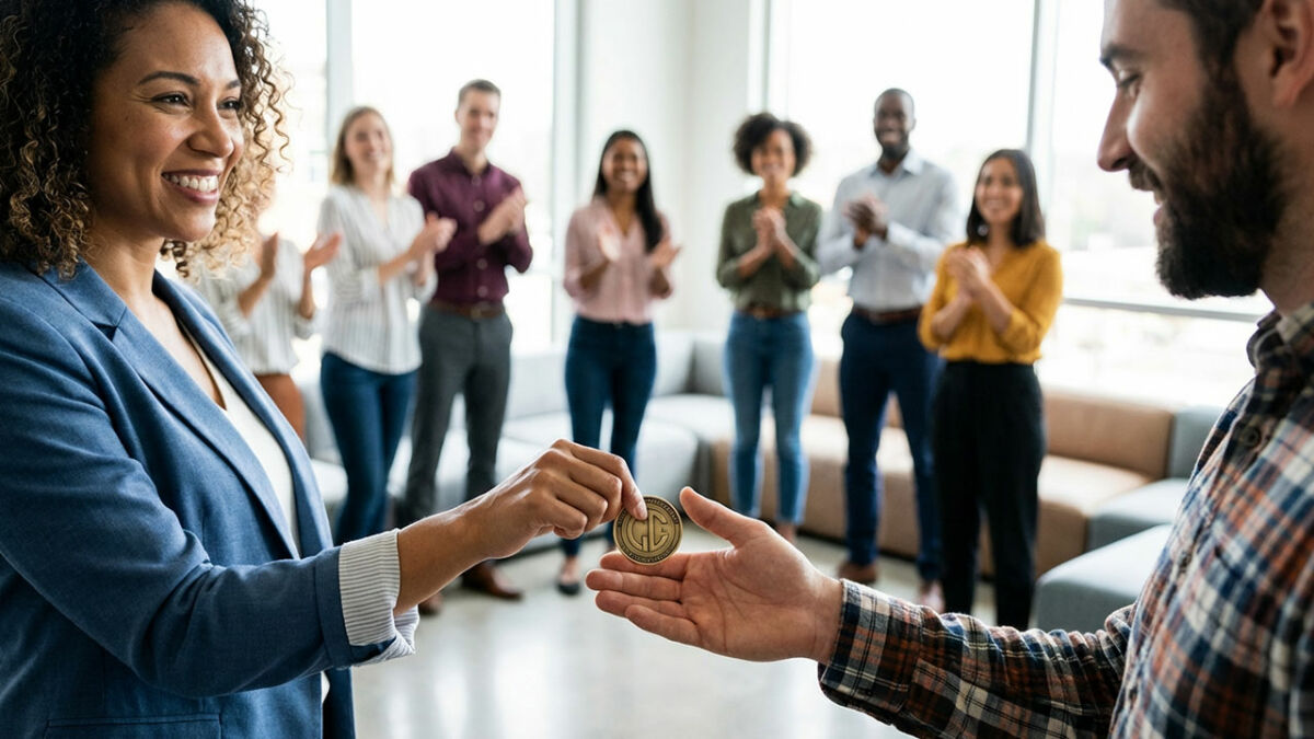 For awards to specific teams, a presentation to the team can be the way to go. If the accomplishment is something major, an all-company gathering can add a sense of importance that employees receiving the coins are sure to appreciate.