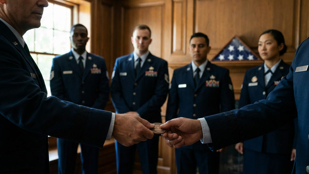 The most common modern challenge coin origin story has its roots in World War I. The story involves a U.S. Army Air Corps lieutenant who had bronze coins made for all the members of his squad. Not long afterward, one of the squad's pilots was captured by the enemy and stripped of all his belongings except for his coin. After escaping, he made his way back to Allied lines by disguising himself in civilian attire. When the officer arrived in Allied territory, French soldiers questioned his allegiance. The officer proved his identity by showing them his coin. Rather than executing as a spy, the French troops escorted him safely back to his unit.